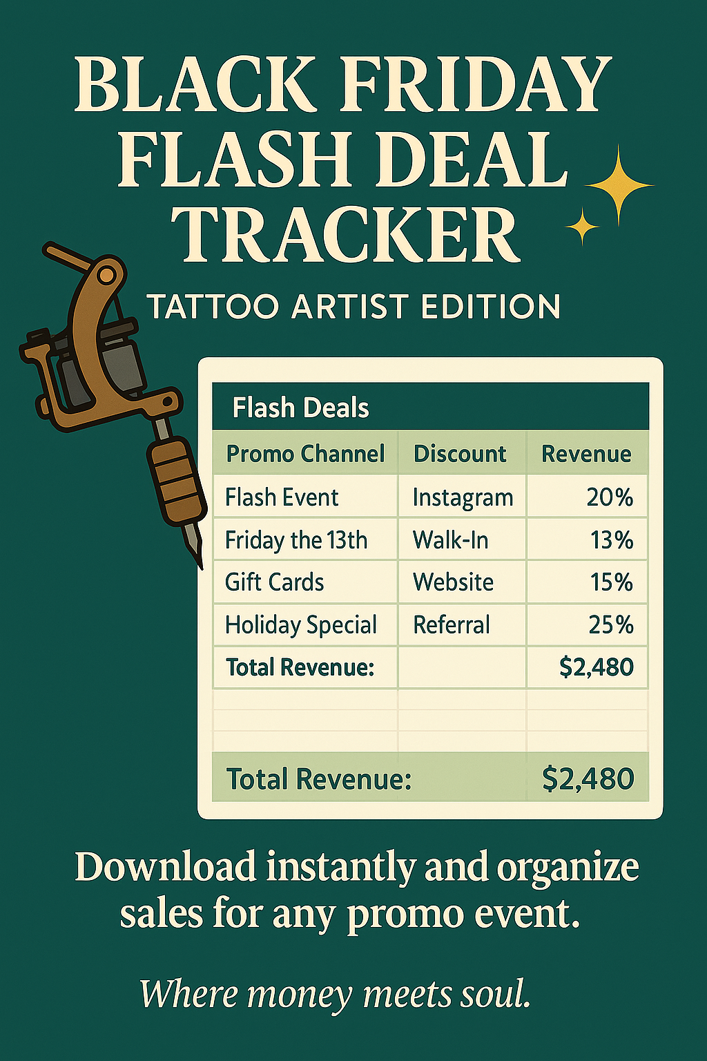 ✅ Tax + Write-Off Guidance — what you can legitimately deduct as a tattoo artist or studio so you keep more of what you earn.